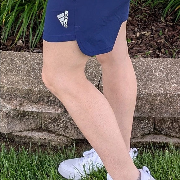Moisture-wicking technology is what makes men’s AEROREADY shorts essential when you want to stay cool and keep dry. Count on lightweight, breathable fabric to absorb sweat during high-energy workouts. Comfortable and stylish navy blue shorts perfect for running or working out. Enjoy a relaxed fit with a versatile design.