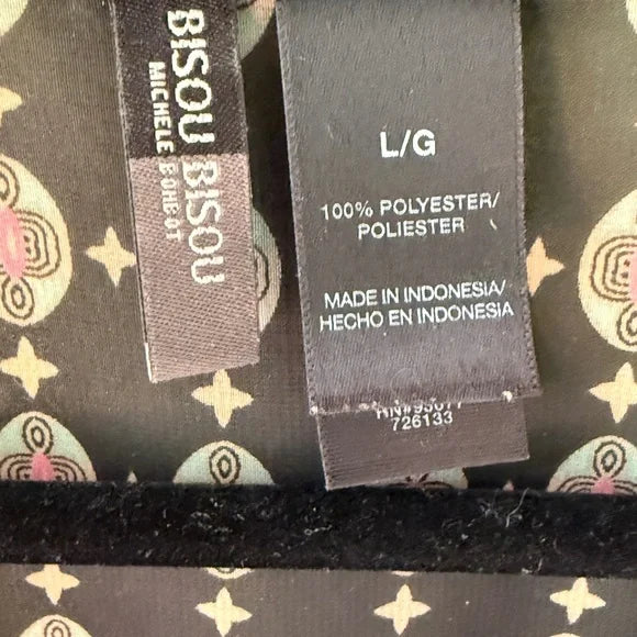 Bisou Bisou Black and Pink Graphic Tunic 3/4 Sleeve Sz L