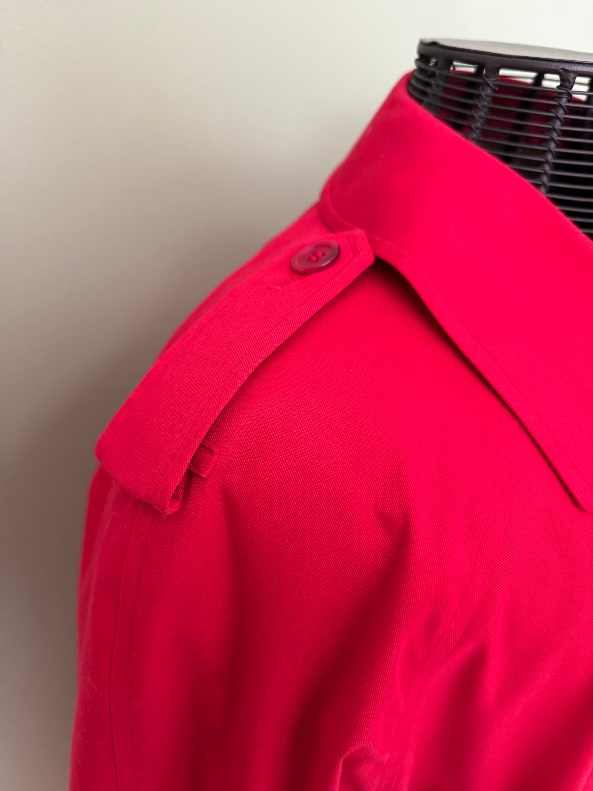 Classic Burberry trench coat. Vibrant red color. Timeless design. Excellent Condition. Returns not accepted.