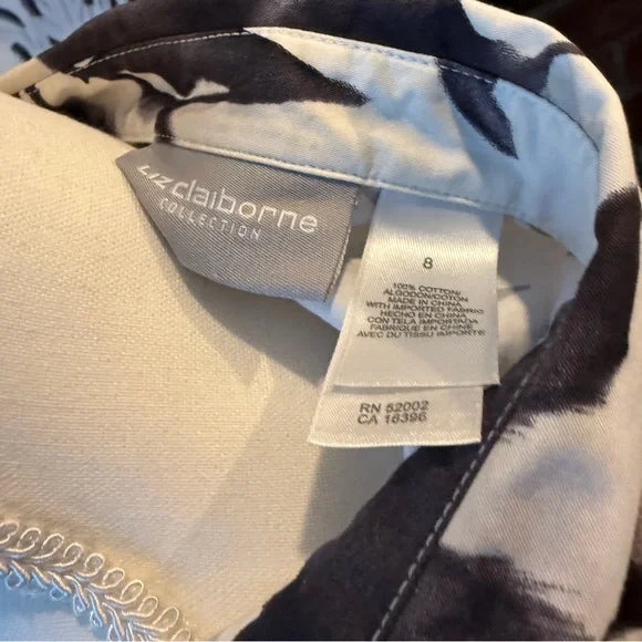 Liz Claiborne Black and White Floral Shirt Sz 8