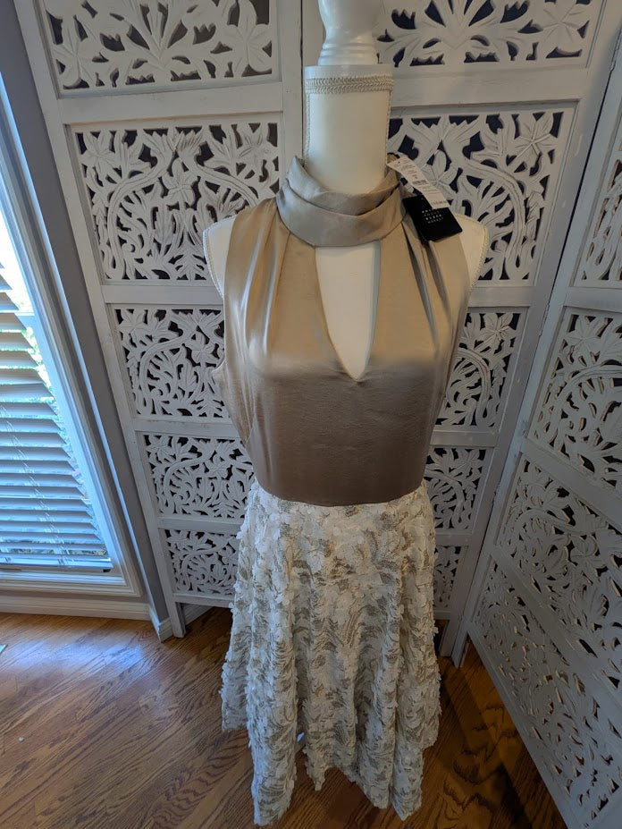 Stylish halter dress in a soft beige tone. Ideal for elegant events.